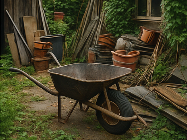 Entrümpelung von Gärten, Schuppen und Außenflächen inklusive Entsorgung von Sperrmüll und Gartenabfällen.